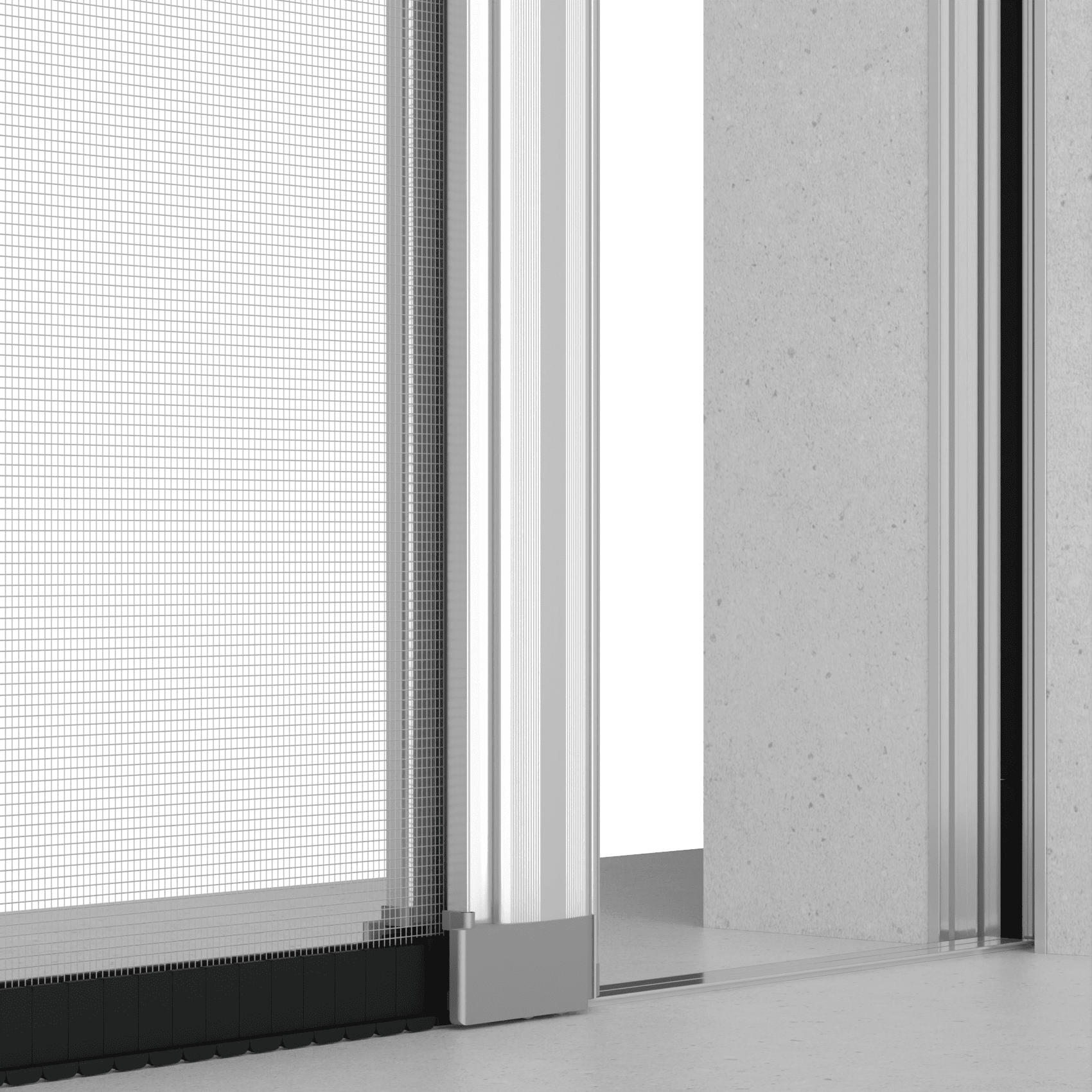 Aluminium-Fliegengitter mit eingebauten Befestigungssystem und 50 mm Abstandsstück. Reibungsschlüssige Seitenführung und ultradünne Bodenschiene. Erhältlich in 1- oder 2-flügeliger Ausführung, mit mittigem oder außermittigem Verschluss. Erfahren Sie mehr!
