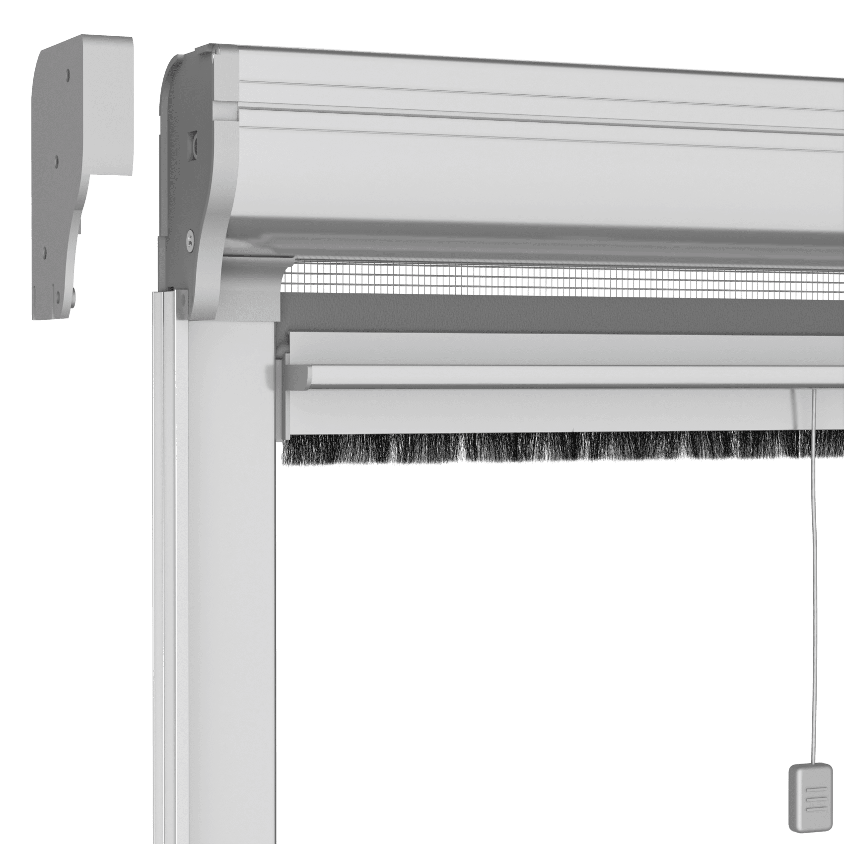 Das Einschalten der Federbremse verlangsamt das Aufrollen des Netzes beim Schließen des Fliegengitters. Wenn die Kupplung eingerastet ist, muss das Mindestmaß der Breite um 200 mm erhöht werden.