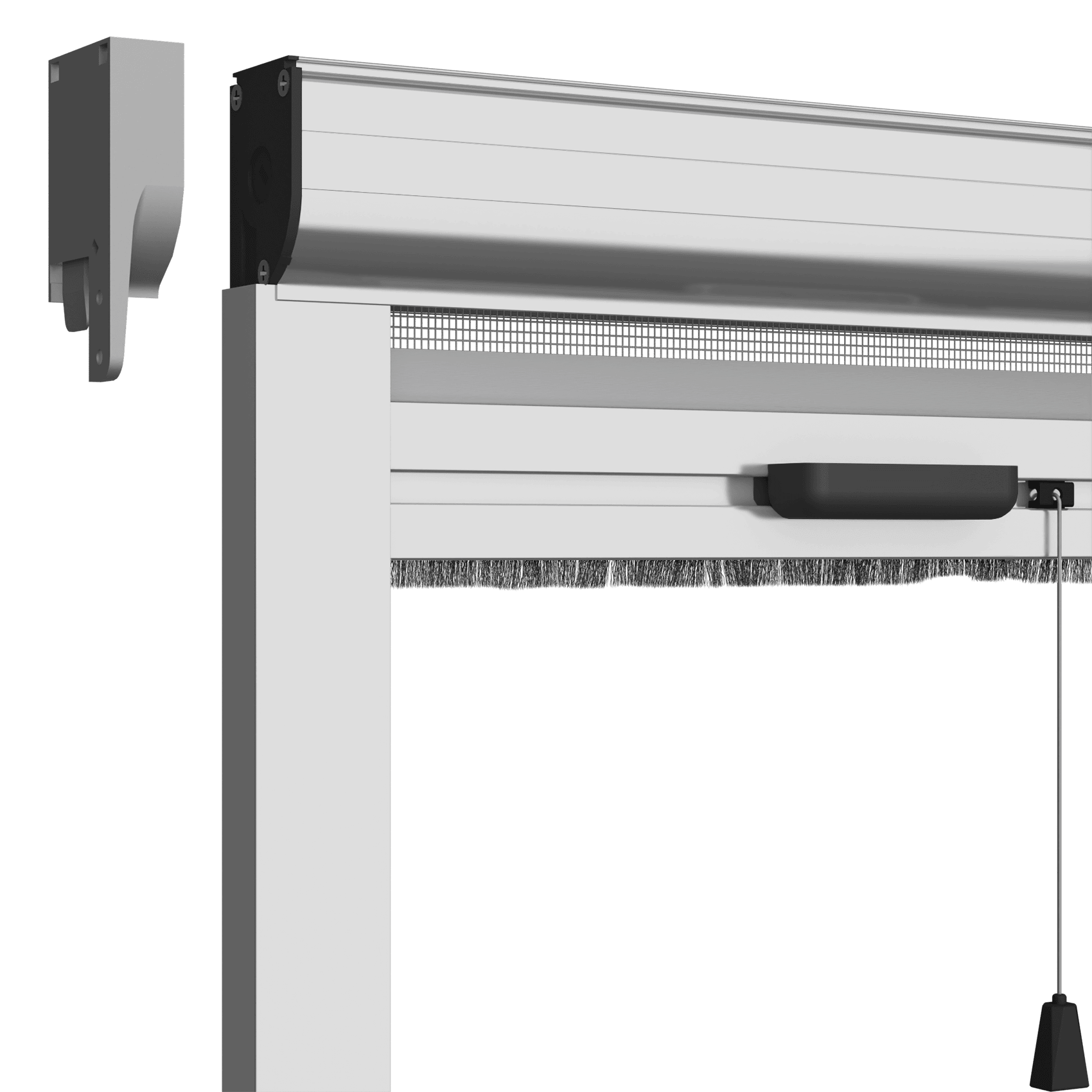 Durch Einrasten der Federbremse wird das Aufrollen des Gewebes beim Schließen des Fliegengitters verlangsamt. Wenn die Federbremse eingerastet ist, muss die Mindestbreite um 200 mm erhöht werden.