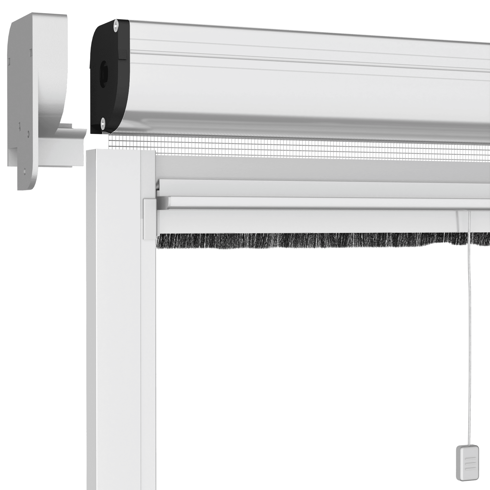 Ergonomische Quaste, geräuschlos bei Kontakt mit Glas, erhältlich in 6 Farben, passend zu Ihrem Fliegengitter. Bronze, Braun, Elfenbein, Silber, Weiß, Schwarz.
