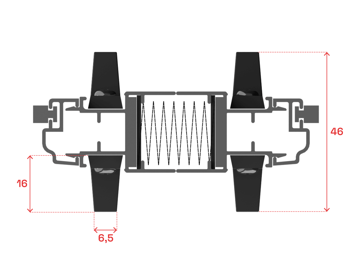 The lower bottom guide has a height of 8.5 mm (the standard bottom rail has a height of 15 mm) and is only available in black. With this option, the overall size of the fly screen increases to 40 mm.