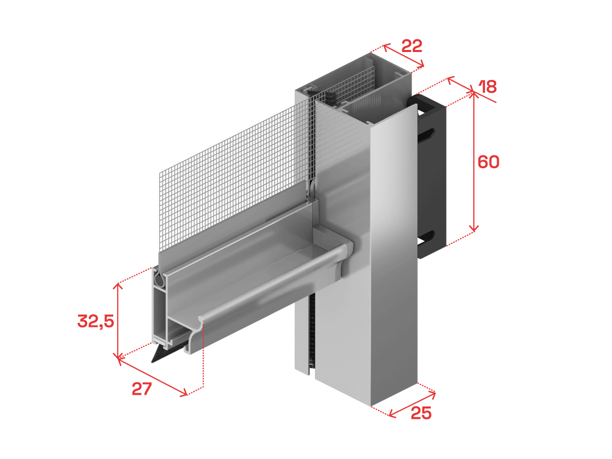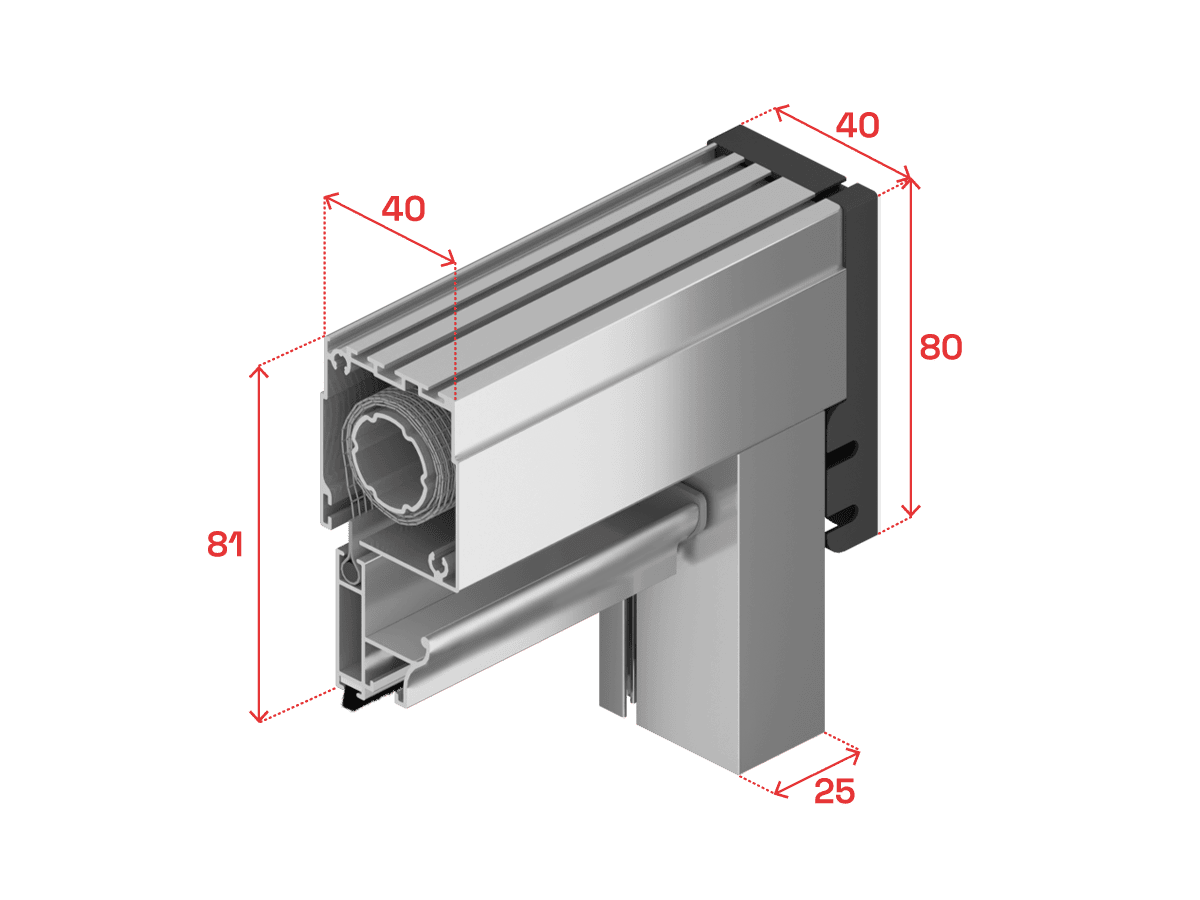 The squared roller box combines elegantly with the aluminium profiles and plastic components.