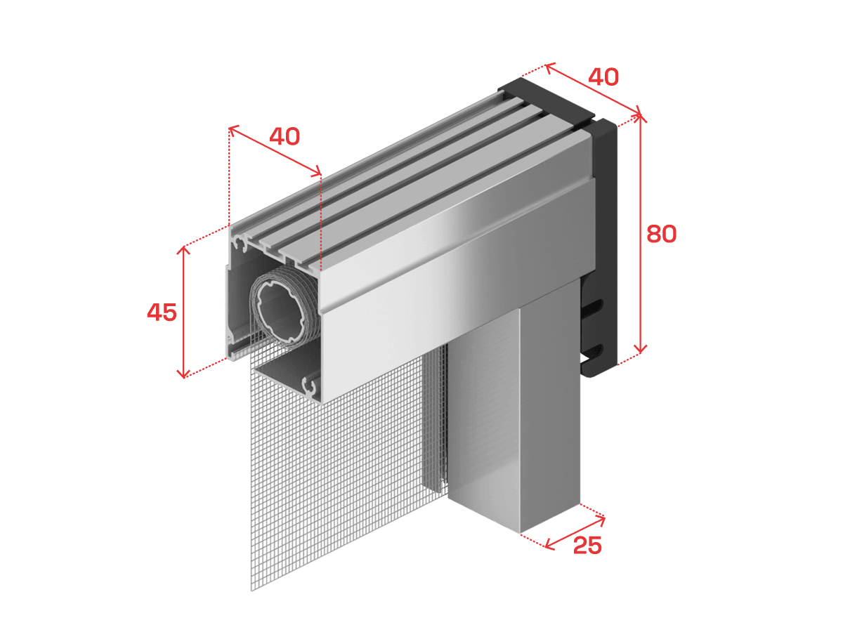 Vertical roller fly screen for windows. 40mm fitted installation without spacer and front panel. Find out more!