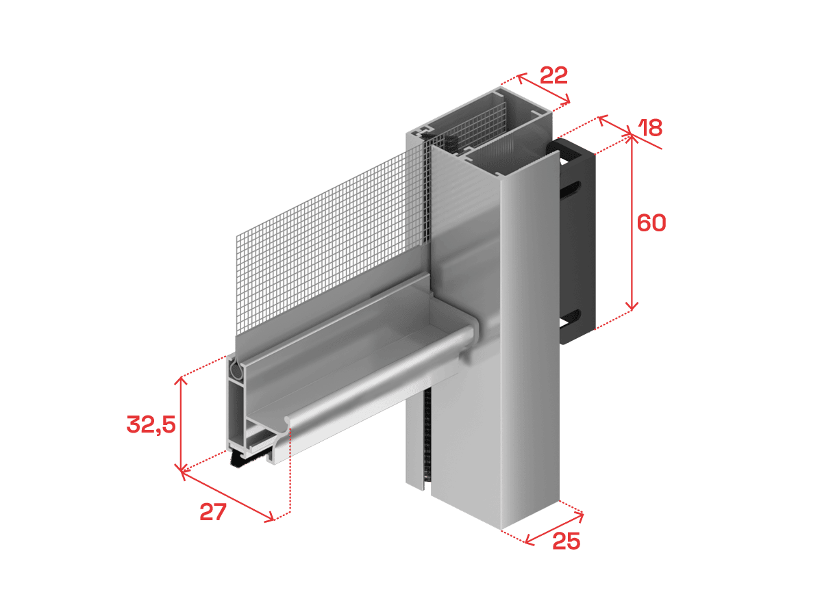 40 Vertical opens and closes with a simple touch: a turn of the handle activates the smooth sliding of the mesh, ensuring a practical and elegant user experience.