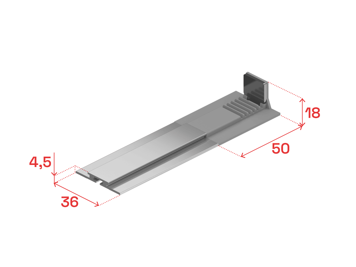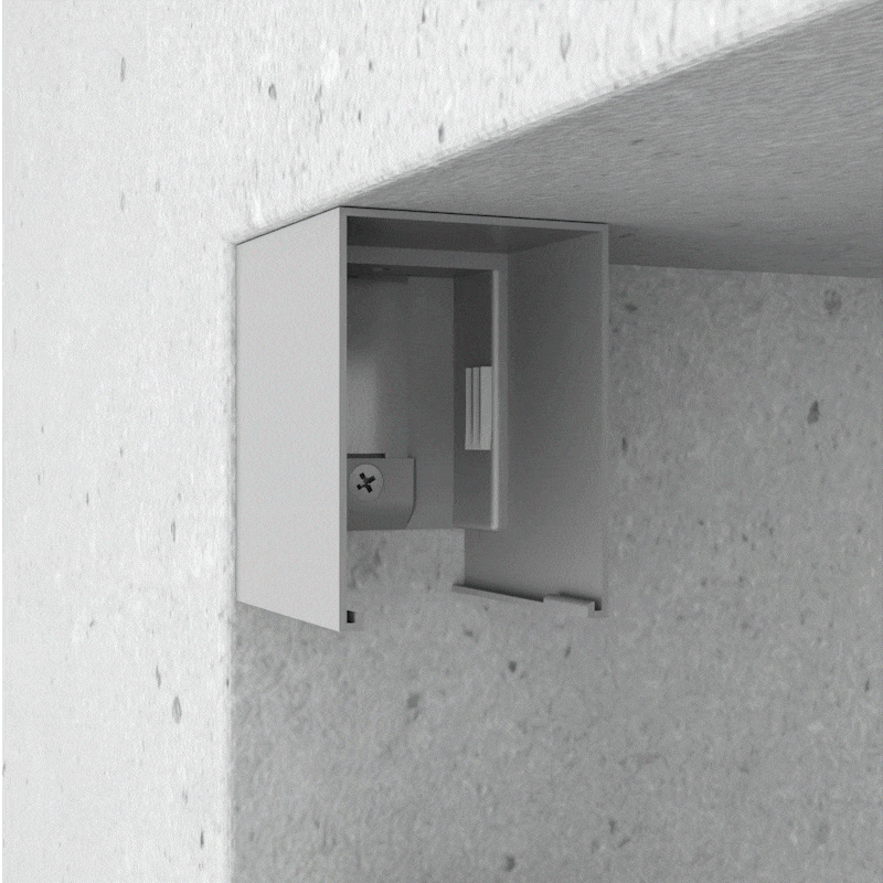 Posizionata sulla guida superiore e inferiore, la staffa a T garantisce un fissaggio stabile e intuitivo del cassonetto.