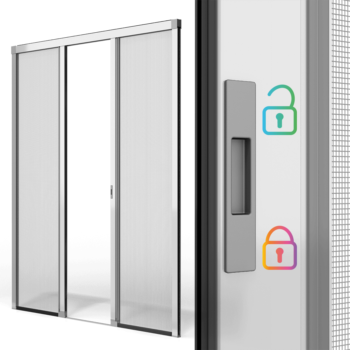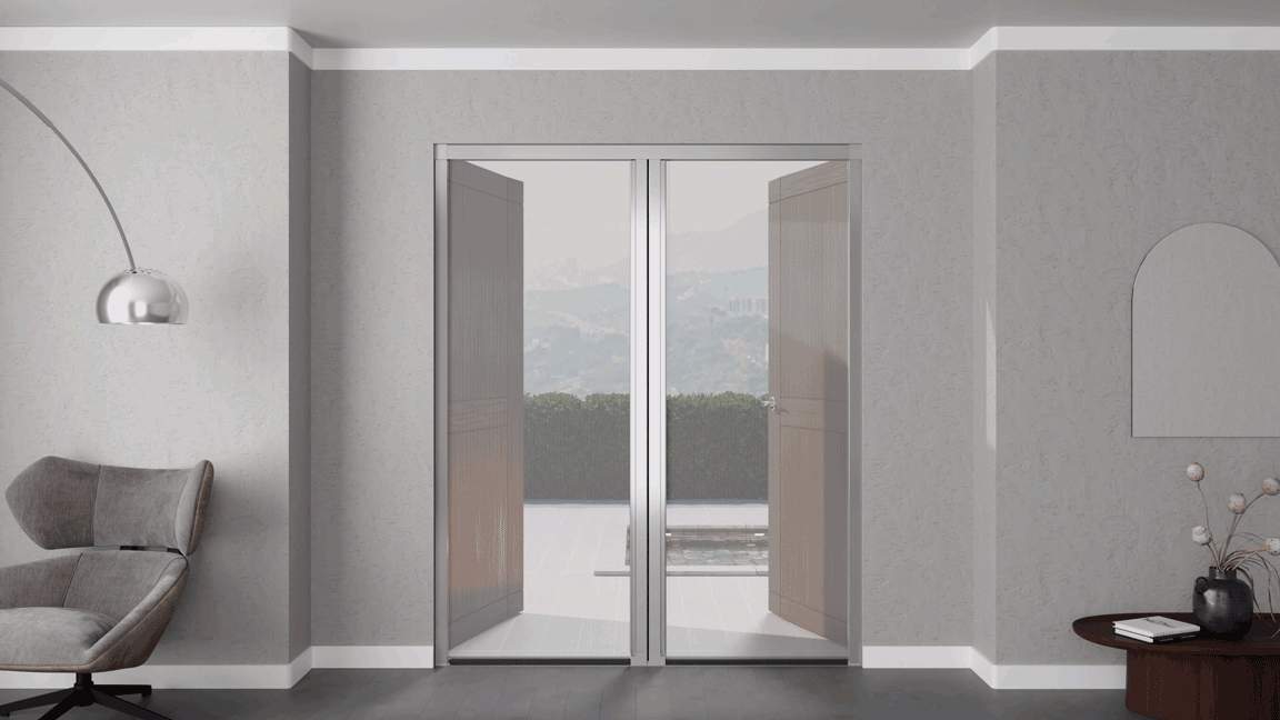 Zanzariera avvolgente per portefinestre con binario inferiore ultra sottile e scorrimento laterale frizionato. Scopri di più!