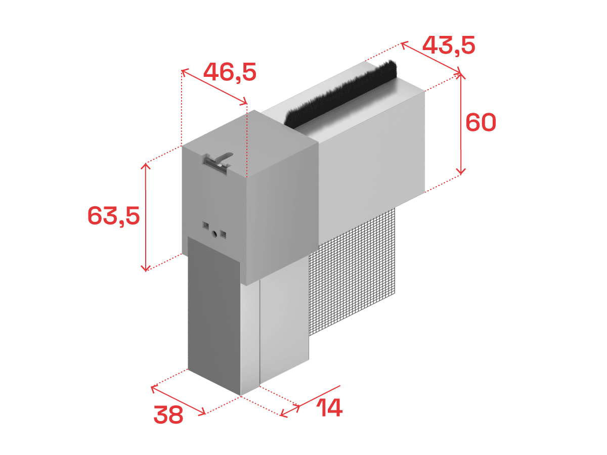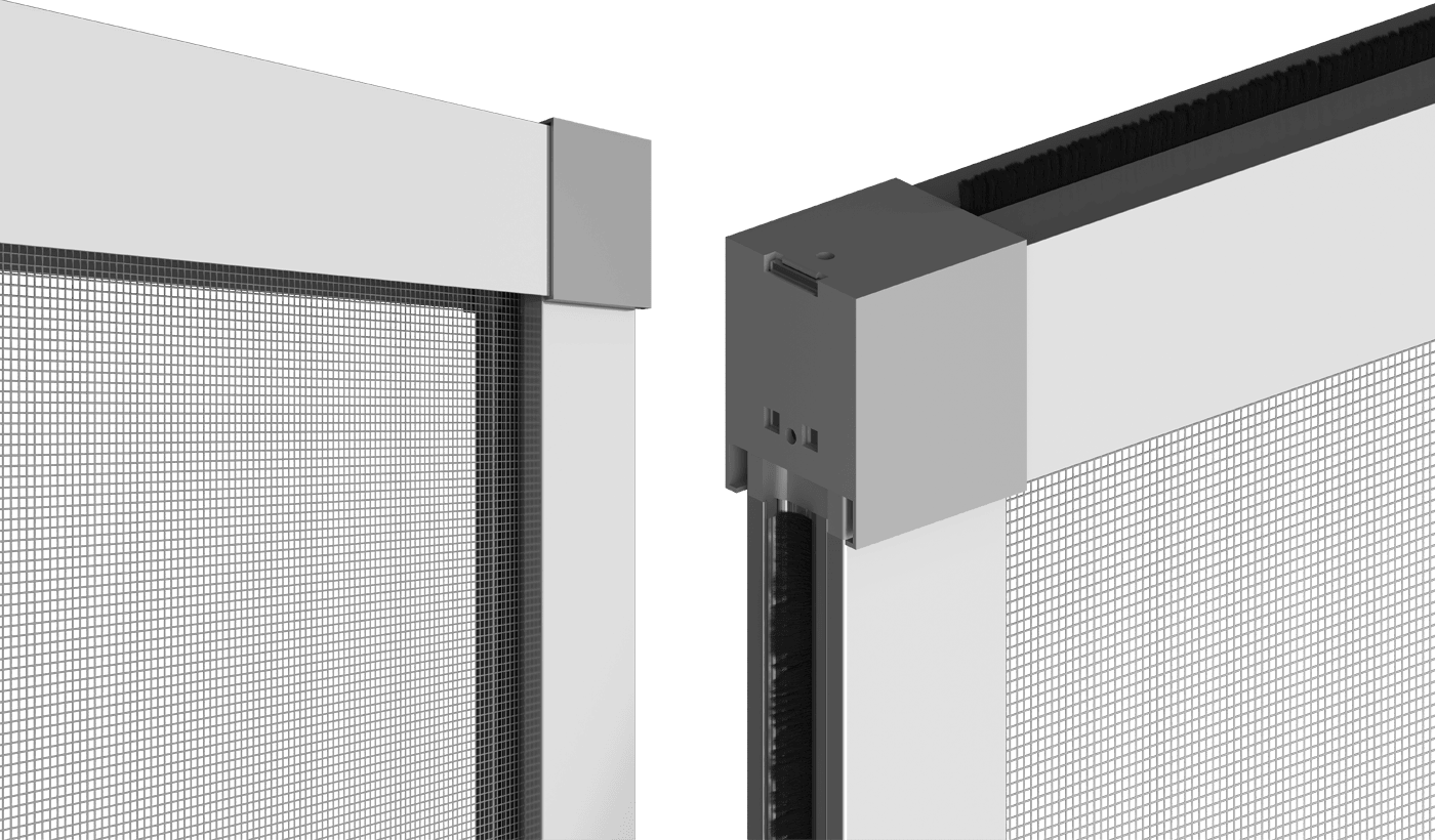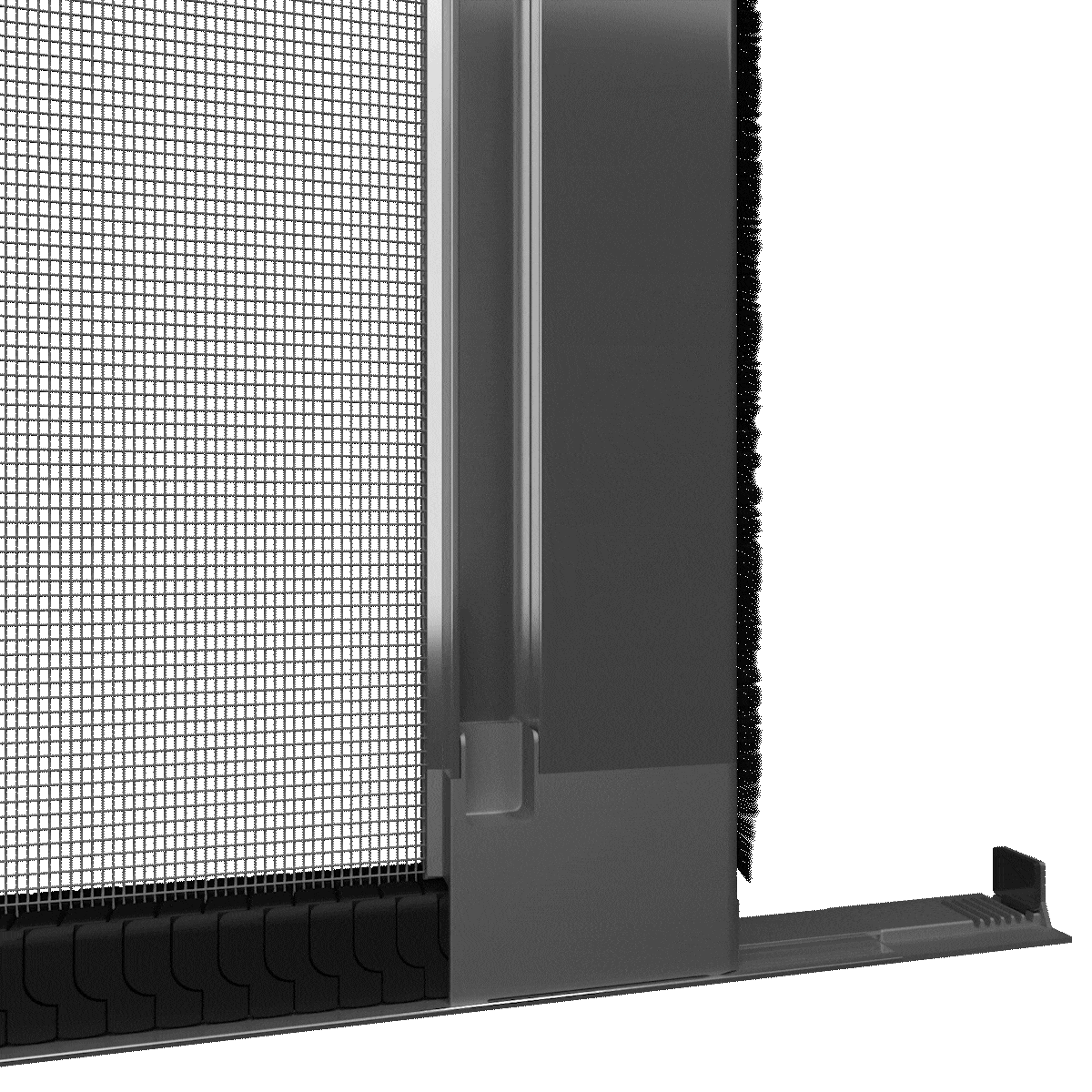 Gli spazzolini integrati sulla guida superiore, sulla maniglia e sul cassonetto creano una barriera discreta contro polvere e insetti.