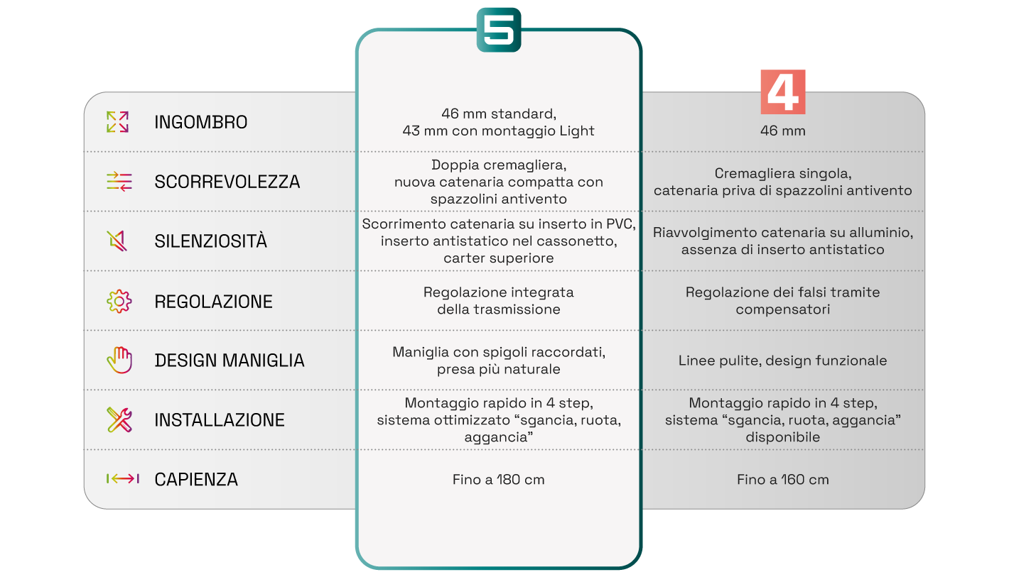Grazie al cassonetto reversibile, al binario ultra sottile e al montaggio semplificato con solo due viti, diventa il nuovo standard per comfort e libertà di movimento.