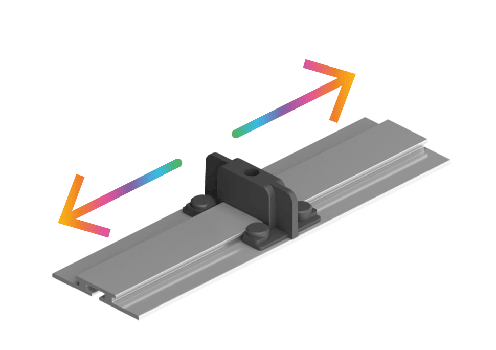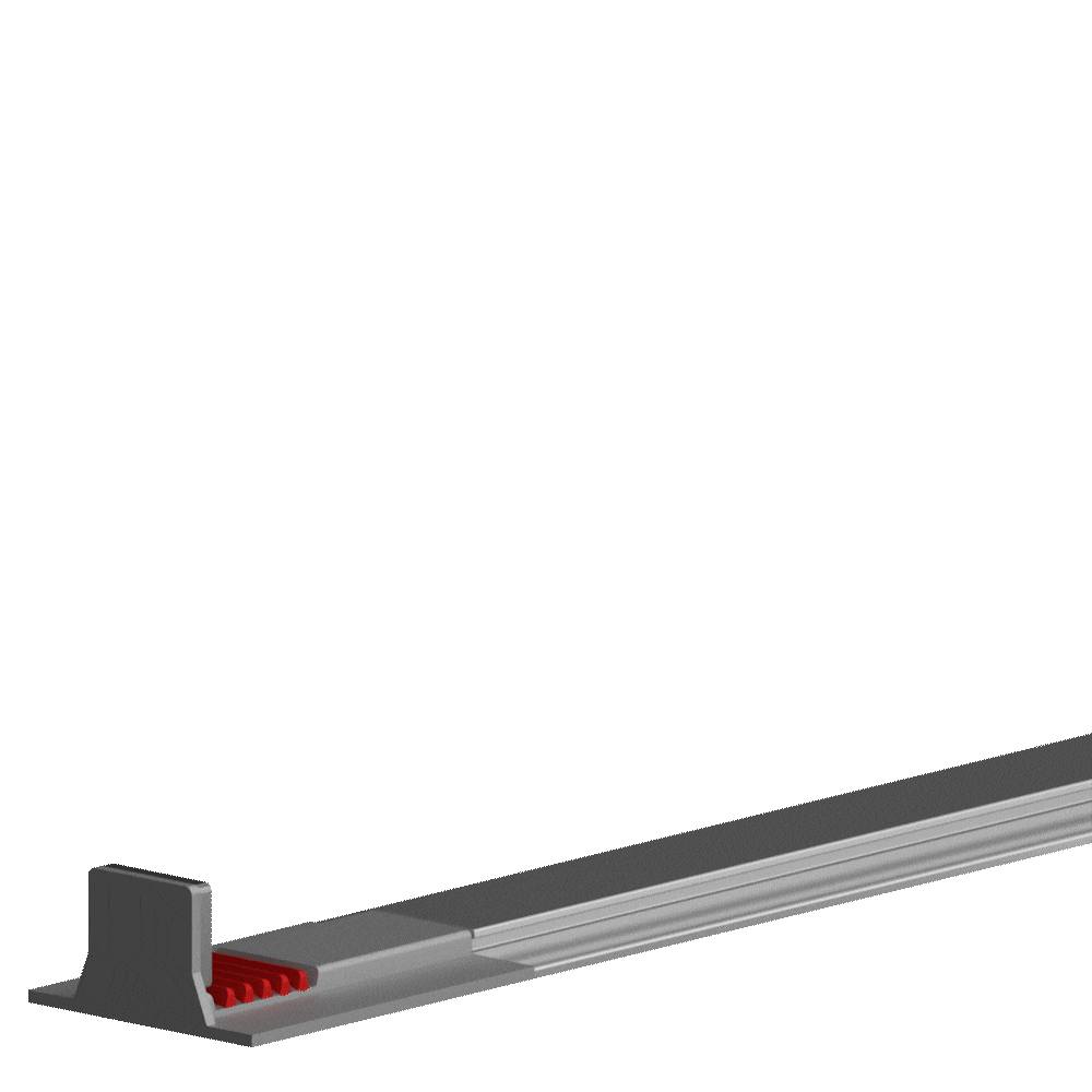 Sul binario inferiore, i finecorsa dentati consentono la stessa libertà di regolazione, permettendo di correggere lo squadro in fase di montaggio.