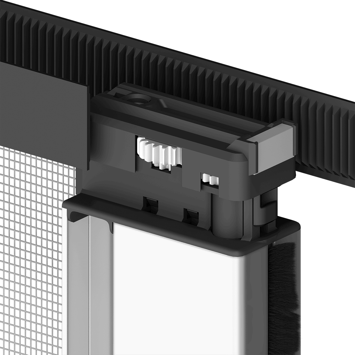 All’interno, gli spazzolini antivento trattengono la rete anche nelle giornate più ventose, garantendo fluidità e protezione costante — ogni volta, senza sforzo.