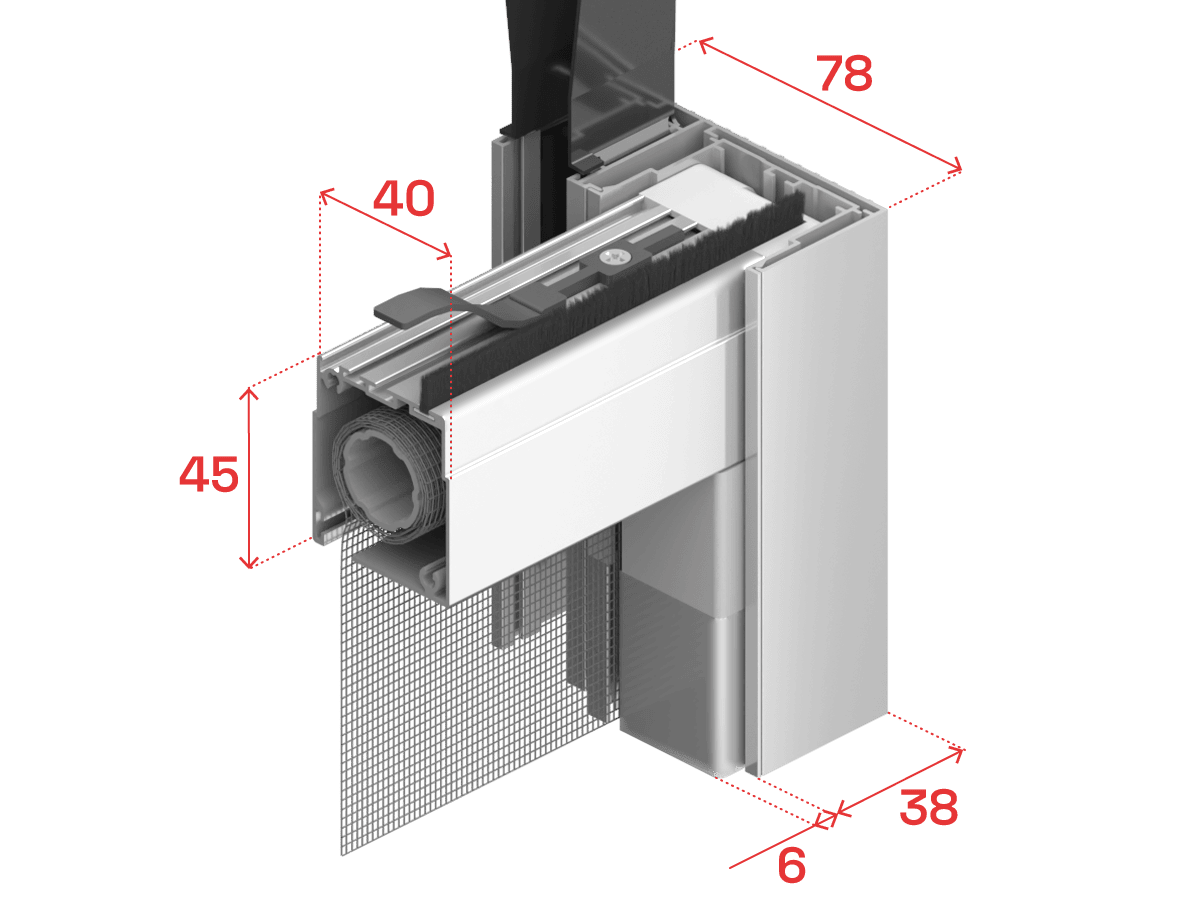 Zanzariera avvolgente in alluminio per finestre a molla. Montaggio ad incasso da 78 mm. Scopri di più!