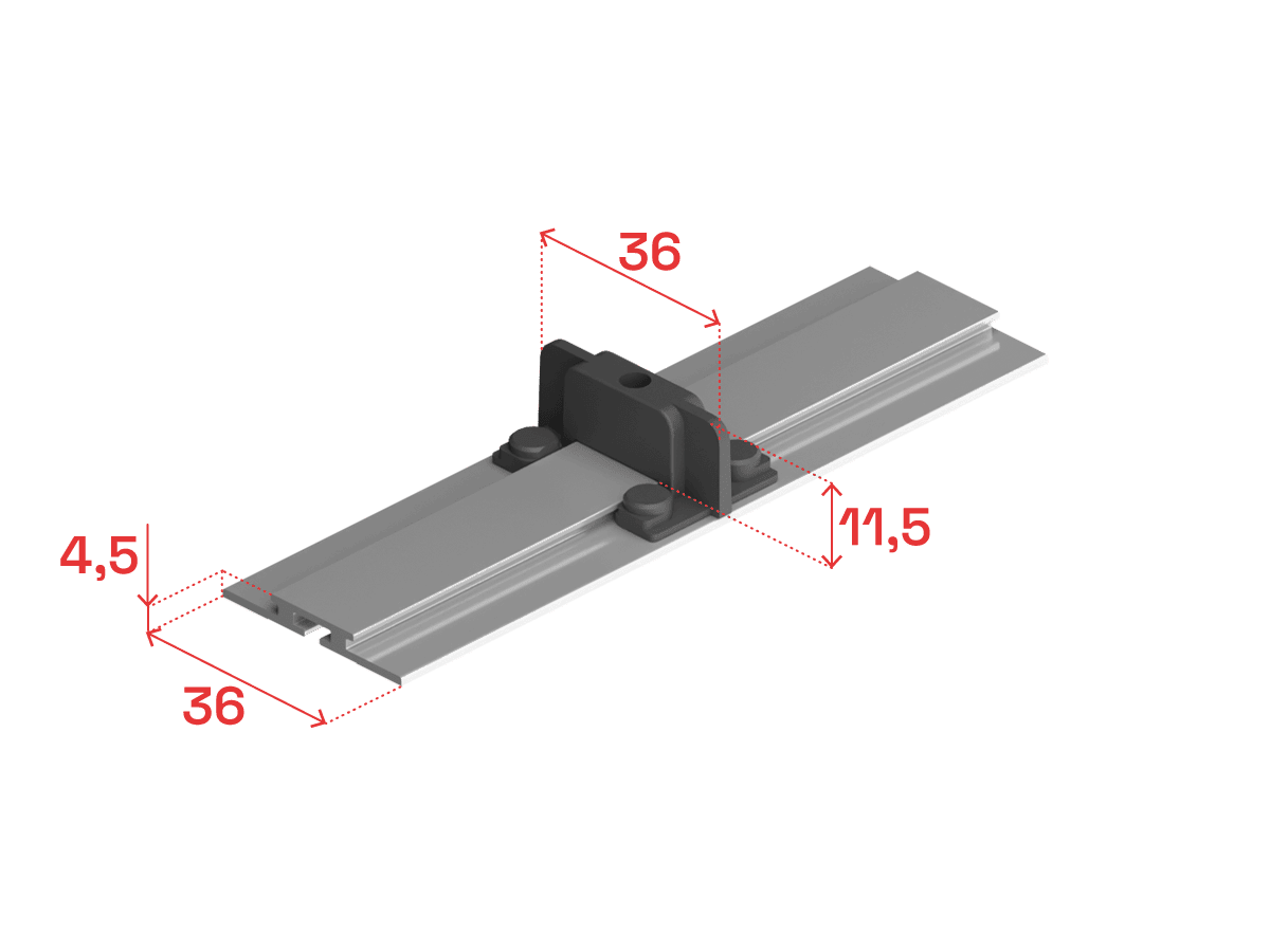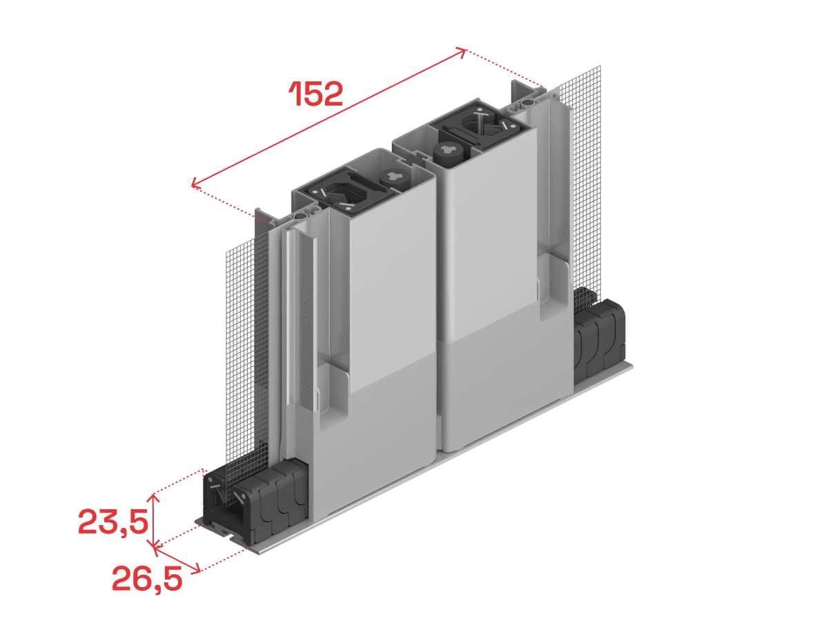 Posizionata sulla guida superiore e inferiore, la staffa a T garantisce un fissaggio stabile e intuitivo del cassonetto.