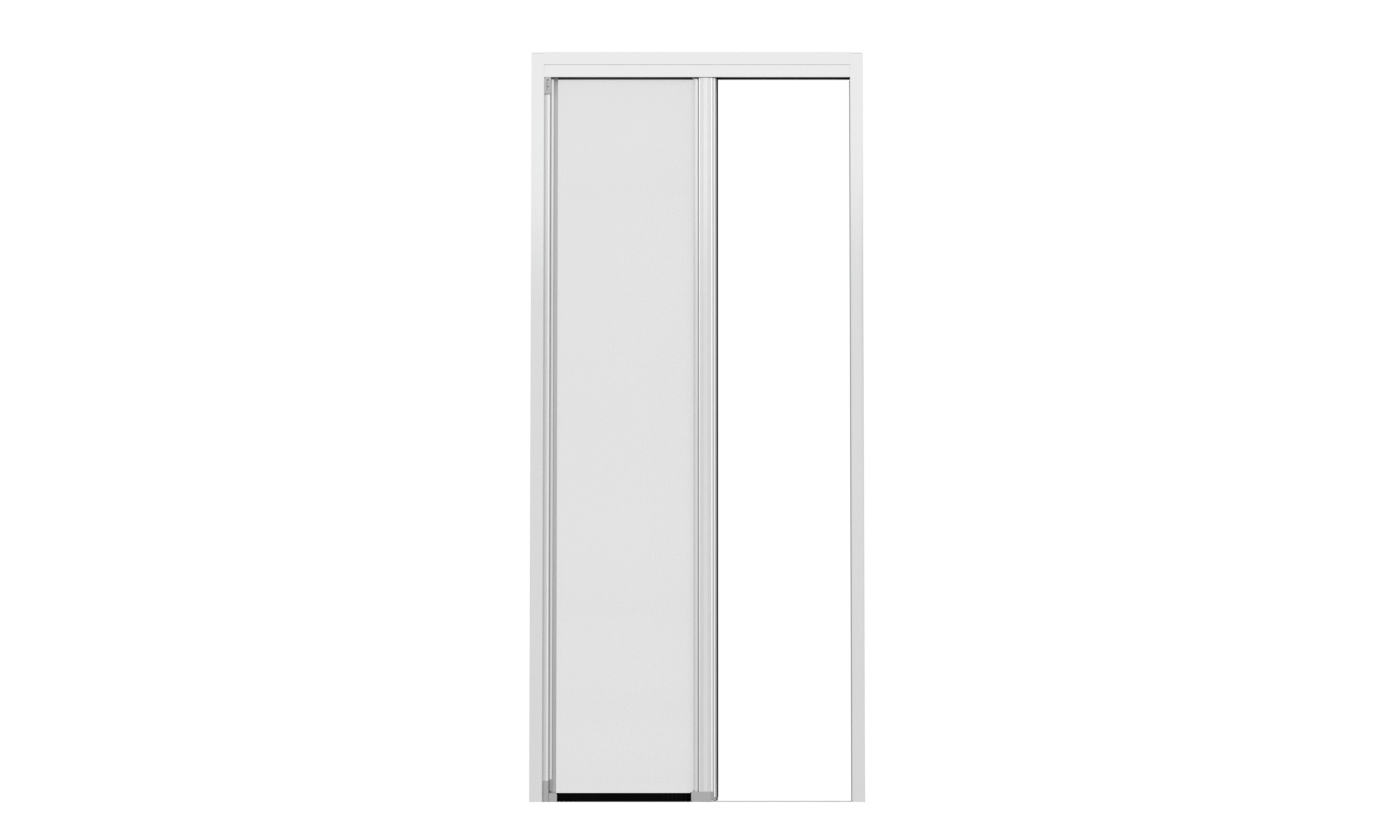 La versione a 2 ante con chiusura decentrata offre un’apertura asimmetrica per una maggiore versatilità, mantenendo una chiusura sicura e veloce grazie ai profili magnetici. Ideale per chi cerca un design innovativo e funzionale.